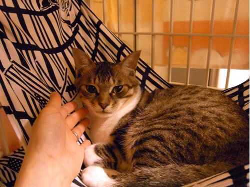 水曜日 我が家にお客様が来られました☆猫達のかかりつけの病院で、去年まで働いていらした先生です。 今は大阪の病院にお勤めで、猫達が会うのは5ヶ月ぶりぐらい。 ニゴさんご、つばめは初めてお目にかかります。 ちゅうしゃのヒトだ... ×3そのハンモック、…