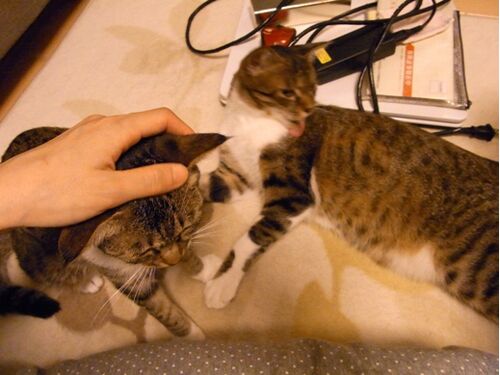うちへ帰ると、猫達はいつも通り。 ニゴとさんごはいつも一緒 メシー! ますます元気な空組 ウイルス検査は、みんなマイナスでした!この狭いケージからも引越しです。 そして... ヨモギはケージを卒業しました。 うふふ♡ ケージの中で飛び跳ねる仔猫達。 い…