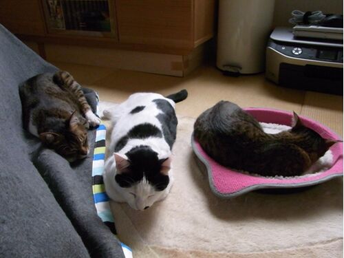 えびす君、なむち君の写真が届いています♪ なむちは人の顔を見ては、 お腹を上にスライディングして来て、撫でてと転がり回っています。 えびすは超抱っこ猫で、座っているとずざーっと膝の上に突進してきて、 前足を胸にバンザイ状態で抱きついて、顔にスリ…