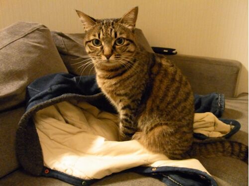 お久しぶりです。 志のです。 かあさんはいつもここに上着を脱ぎすてます。 なので、志のもいつも乗ります。 かあさんのものは志ののもの。